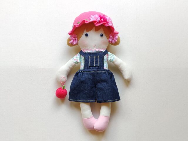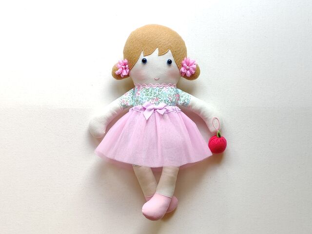 マジェンタ色のスカーフとリンゴがアクセント。
