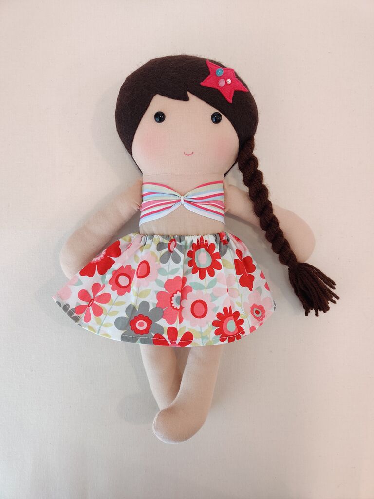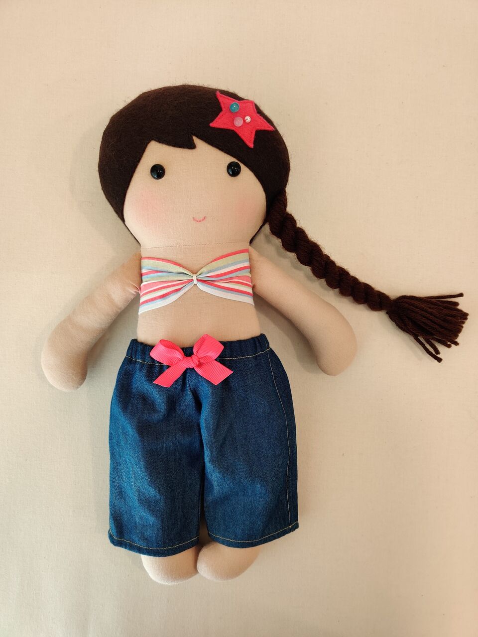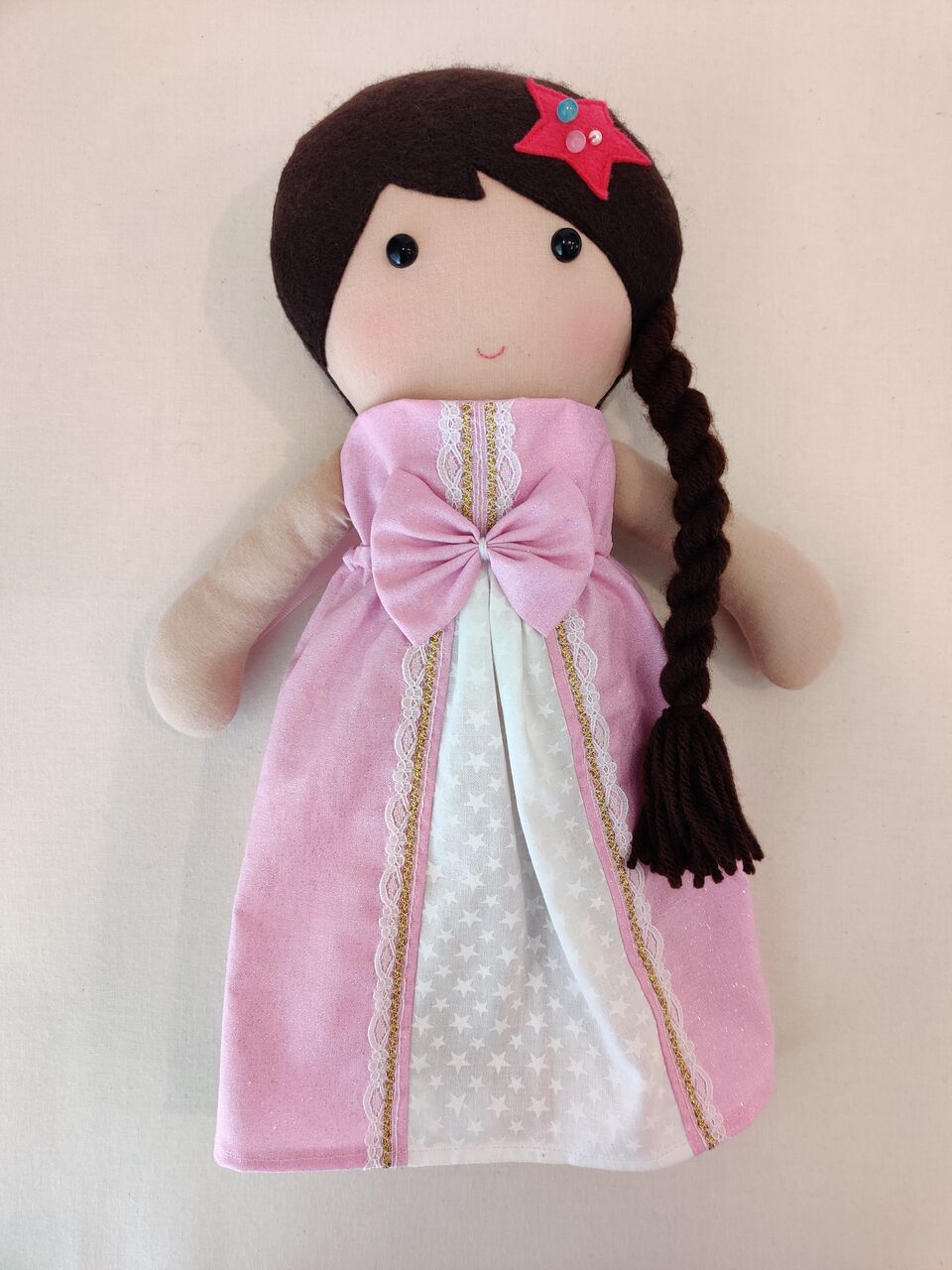 このお姫様人形は髪の毛に二色のリボンを編み込んで