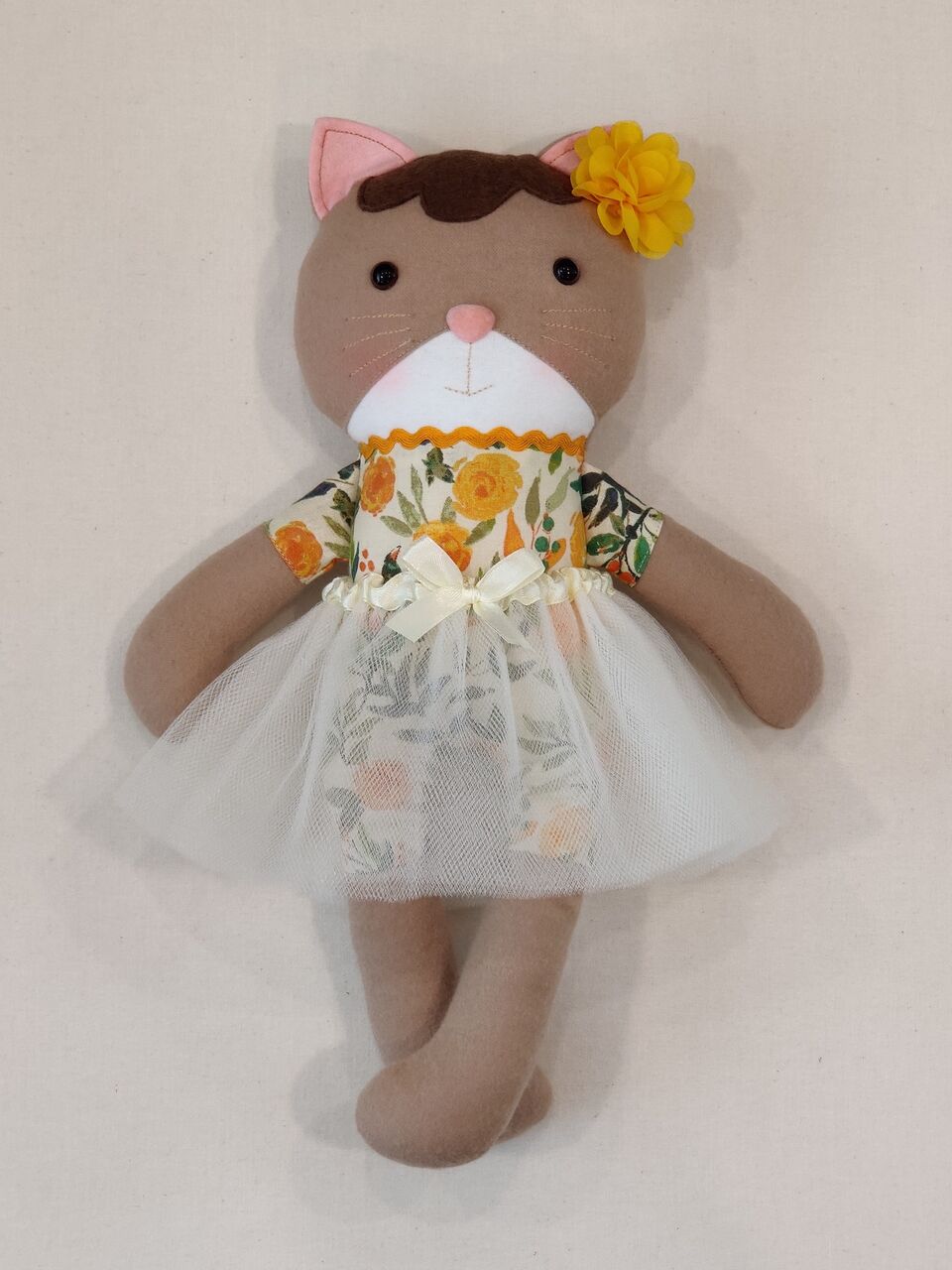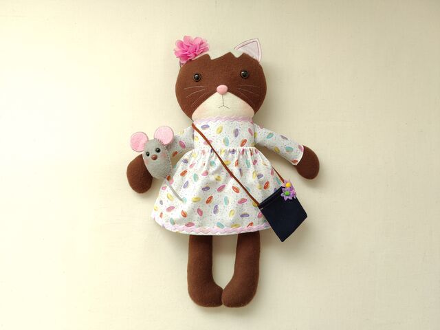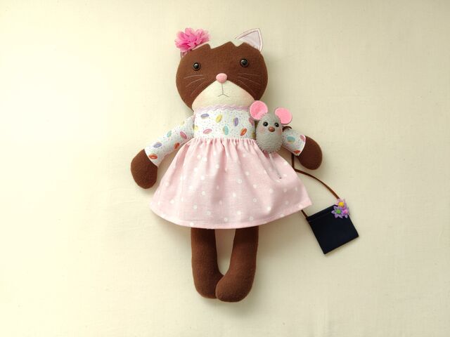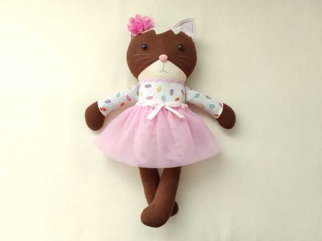今日の人形は茶色のネコちゃんです。