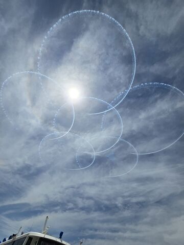展示飛行の練習をしていてラッキーでした!)