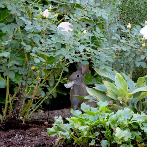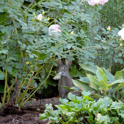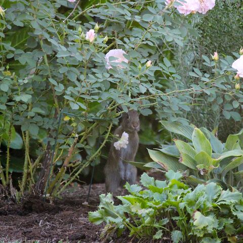 ピンボケですが、バラの花を食べている所です。